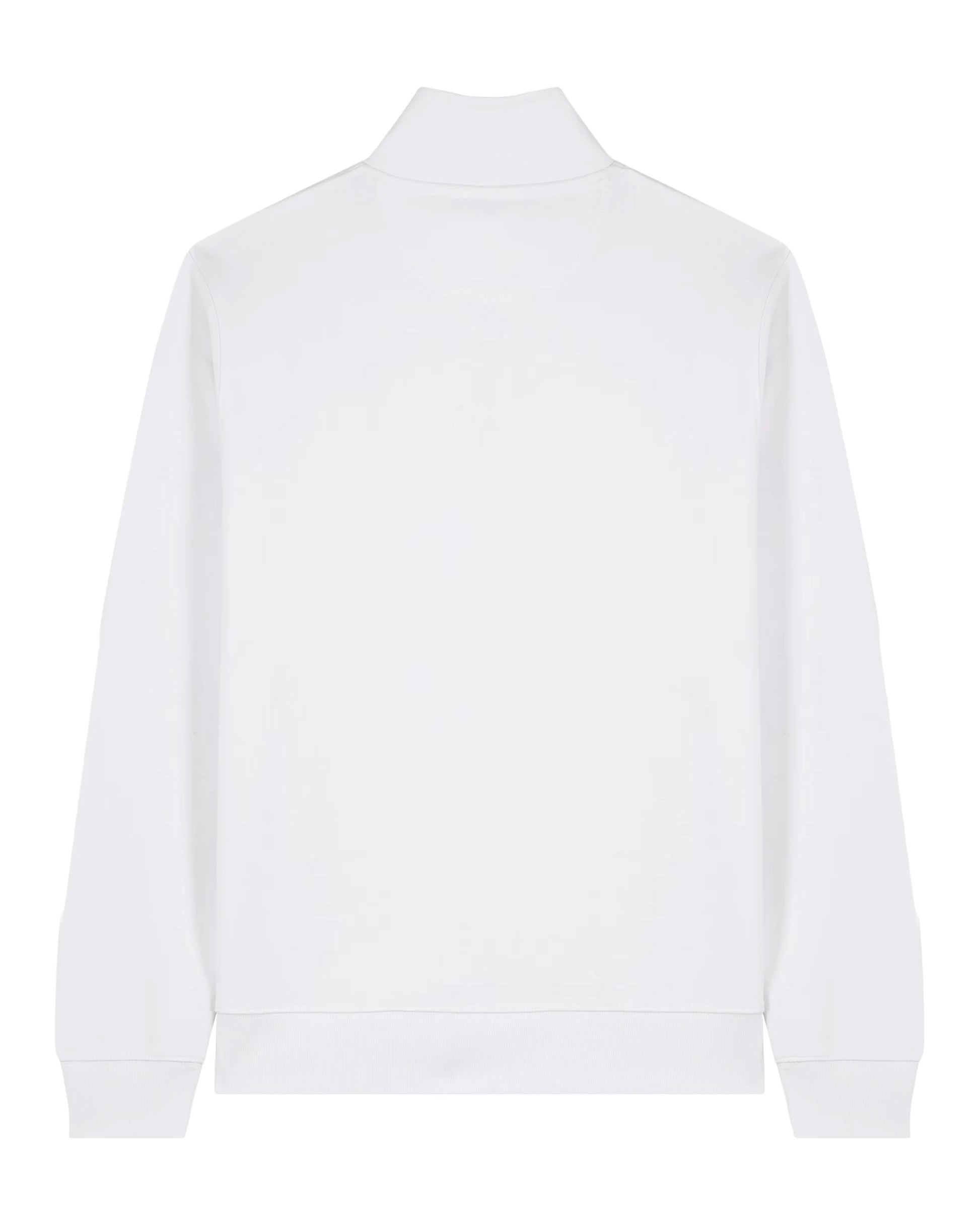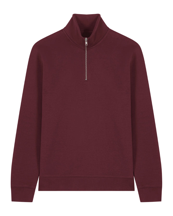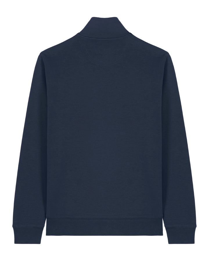 Felpa con zip premium in cotone organico e poliestere riciclato.